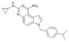 SCH-79797 is a drug which acts as a potent and selective antagonist of the thrombin receptor proteinase activated receptor 1 (PAR1).[1] It has anticoagulant, anticonvulsant and antiinflammatory effects and has been researched as a treatment for heart attack and stroke, though never developed for medical use.[2][3][4][5] It also shows antibiotic actions which are not shared with other PAR1 antagonists such as vorapaxar, so may be mediated through a different target than PAR1.[6][7]