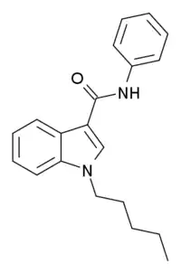 - Banister SD, Wilkinson SM, Longworth M, Stuart J, Apetz N, English K, et al. (July 2013). "The synthesis and pharmacological evaluation of adamantane-derived indoles: cannabimimetic drugs of abuse". ACS Chemical Neuroscience. 4 (7): 1081–92. doi:10.1021/cn400035r. PMC 3715837. PMID 23551277.