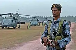 The first RCyAF Regiment Squadron was formed under Flt Lt Gerry W. Weeraratna in 1956 to provide ceremonial guards and security for bases and airfields of the Royal Ceylon Air Force based on the RAF Regiment of the Royal Air Force.[1] However the ground defence of the air bases and civil airports were supplemented by the Ceylon Army. This limited the ability of the army to deploy it troops in offensive operations and made the air force dependent on the army. This was seen specially during the 1971 JVP Insurrection.