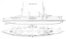 SMS Fürst Bismarck (Prince Bismarck)[lower-alpha 1] was Germany's first armored cruiser, built for the Kaiserliche Marine before the turn of the 20th century. The ship was named for the German statesman Otto von Bismarck. The design for Fürst Bismarck was an improvement over the previous Victoria Louise-class protected cruisers—Fürst Bismarck was significantly larger and better armed than her predecessors.
