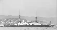 In 1898, Kaiserin und Königin Maria Theresia was dispatched to Cuba during the Spanish–American War, to evacuate Austrian and German nationals in the city of Santiago. The ship arrived off Santiago on 3 July, the day the Spanish admiral Pascual Cervera y Topete attempted to break out of the harbor, through the American blockade.[11] The American auxiliary vessel USS Resolute spotted Kaiserin und Königin Maria Theresia approaching US Army transports off Siboney and Daiquirí. Resolute informed the battleship USS Indiana about a "Spanish battleship" attacking the army ships, after which Indiana steamed to engage the supposed Spanish warship. After closing to 6,000 yards (5,500 m), Indiana's captain identified Kaiserin und Königin Maria Theresia shortly before his gunners would have opened fire. The Austrian cruiser had similar run-ins with other vessels of the American fleet as it sought permission from the American commander to perform its evacuation.[12] After inspecting her, Admiral William T. Sampson, the American commander, permitted the Austrian cruiser to enter the harbor for her mission. After picking up the evacuees, Kaiserin und Königin Maria Theresia went to Port Royal, Jamaica, and remained in the Caribbean until the end of the war.[11] On 9 May, she departed, bound for Pola, and arrived on 9 December.[13] Over the winter of 1898–1899, the ship served in the winter training squadron along with the battleship Budapest.[14]