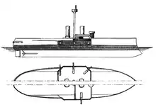 Work on the new design began in 1879,[4] but parliamentary objections to naval expenditures, particularly after the accidental sinking of the ironclad Grosser Kurfürst in 1878, delayed construction of the vessel. Stosch initially sought to secure funding for two ships of the design, with the intention to retain one as a material reserve to be mobilized in the event of war, but the Reichstag refused. Stosch proposed the new vessel for the 1879–1880 fiscal year, which was refused, leading him to drop the request for the next year's budget. Finally on 7 December 1881, the parliament voted to approve funds for Oldenburg, albeit an amount significantly less than the navy desired.[3][5] The budgetary constraints severely limited the ability of the design staff to produce an effective improvement on the Sachsens. On the available budget, the new ship's displacement would have to be reduced by some 2,000 t (1,968 long tons) compared to the Sachsens.[2][6] The limited displacement forced a reversion to the casemate ship arrangement, as well as a reduction in the caliber of guns from 26 cm (10.2 in) to 24 cm (9.4 in). To somewhat offset the reduction in offensive power, these guns were of a new, longer 30-caliber type that had a higher muzzle velocity than the shorter 22-caliber guns carried by the Sachsen class.[5]