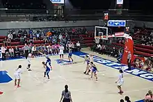 The SMU Mustangs women's basketball team represents Southern Methodist University in women's basketball. The school competes in the American Athletic Conference in Division I of the National Collegiate Athletic Association (NCAA). The Mustangs play home basketball games at the Moody Coliseum in Dallas, Texas.[2]
