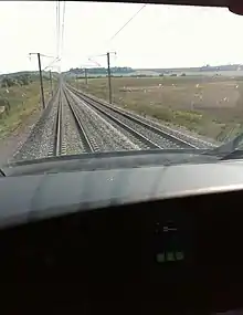 The train set ran with larger wheels, and the catenary voltage was increased to 31 kV from the standard 25 kV.[4] The maximum speed was achieved near kilometer post 193 on the LGV Est between Meuse and Champagne-Ardenne TGV stations.