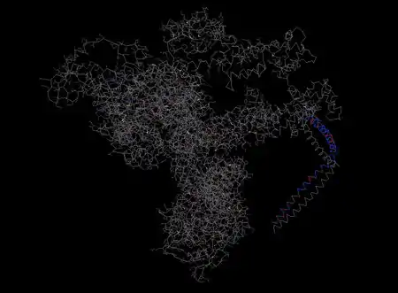 SOGA2's 3d structure predicted by Phyre2.[24] Structure is based on the crystal structure of tropomyosin at 7 angstrom resolution, with 12% identity. 283 residues match, in the CCDC containing N-terminal region.