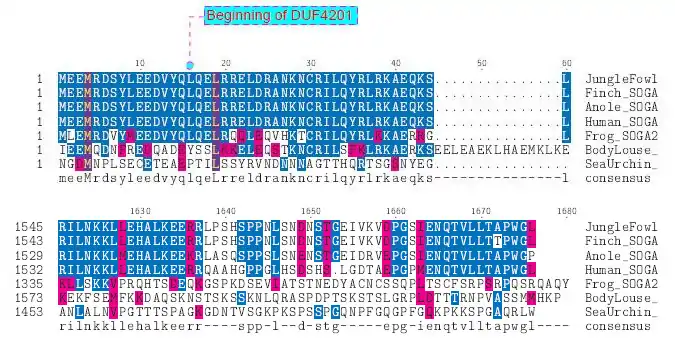 Red JungleFowlCCDC165296XP_423729.3160070%DUF4201 not present