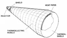 A reactor was developed with heat pipes transporting the heat to thermoelectric generators. It was cooled with lithium.[3] The project never advanced to flight hardware and was terminated in 1994.[4]