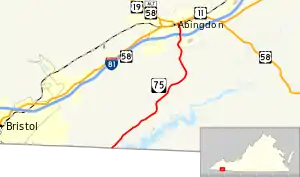 State Route 75 (SR 75) is a primary state highway in the southwest part of the U.S. state of Virginia, running southwest from U.S. Route 11 and U.S. Route 58 Alternate in Abingdon to Tennessee's State Route 44.