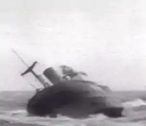 ![]() Still from newsreel footage of SS Flying Enterprise when she was sinking, 10 January 1952 | |