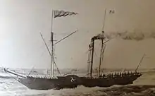 Mona's Isle was a wooden paddle-steamer designed and built by John Wood & Co., Glasgow. She had no official yard number. Mona's Isle was launched by James Wood on Wednesday, 30 June 1830.[1] She had a registered tonnage of 200 GRT; length 116 ft 0 in (35.4 m); beam 19 ft 0 in (5.8 m); depth 10 ft 0 in (3.0 m); speed 8.5 knots (15.7 km/h; 9.8 mph).