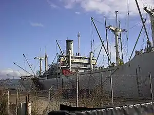 ![]() SS Red Oak Victory as seen from the dock in 2006, before extensive restoration work was performed | |