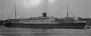 SS Scharnhorst was a Norddeutscher Lloyd ocean liner, launched in 1934, completed in 1935 and made her maiden voyage on 8 May 1935.[6] She was the first big passenger liner built by the Third Reich. Under the German merchant flag, she was the second liner named after General Gerhard J. D. von Scharnhorst. She was one of three ships on the Far Eastern route between Bremen and Yokohama; her sister ships were Potsdam and Gneisenau. These three ships were planned to shorten the journey time between Bremen and Shanghai from the usual 50 days to 34. She was trapped in Japan in September 1939 and later converted into an Imperial Japanese Navy aircraft carrier named Shin'yō in 1942 and sunk by the US submarine USS Spadefish in 1944.