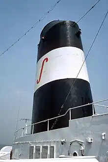 ^ p: In 1968, the gangplank to the main "A" Deck was a single, uncovered ramp that was subsequently replaced with a double-ramped covered gangplank.[8]