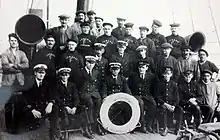 On 9 April 1917, a German submarine had penetrated to within a few miles of Liverpool and succeeded in torpedoing the American liner SS City of New York. The Tynwald, inward bound from Douglas, was just passing the Bar Light Ship[6] and was quickly on the scene. The weather at the time was far from good, a strong wind blowing with showers of snow at intervals. The passengers were conveyed in the liner's own lifeboats, which came alongside the Tynwald, and, although the sea was distinctly lumpy, causing a considerable rise and fall of the lifeboats, all were safely taken on board, including Admiral Sims of the U.S. Navy.[6]