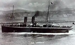 Tynwald made her first appearance in Douglas on 27 June 1891. Fast for her size, she could hold her own with the Queen Victoria.[3] In 1900 when racing with the Queen Victoria against an opposition steamer the Lily, Tynwald arrived at Liverpool four minutes ahead of the Queen Victoria and eleven minutes ahead of the Lily.