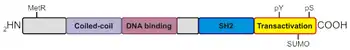 - STAT5 then binds to these phosphorylated-tyrosines using their SH2 domain (STAT domains illustrated below);