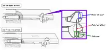 The CPW is a modular selective fire lever-delayed blowback operated weapon (using what STK calls a cam recoil mitigation mechanism), which contributes to the low felt recoil and allows for use with high pressure ammunition. The weapon has a conventional submachine gun layout with the magazine housed in the pistol grip. The pistol grip's backstrap and the 30-round magazine are molded from a translucent plastic which allows the shooter to quickly verify the remaining level of ammunition visually.[1] The receiver is machined from a lightweight aluminum alloy and most of the other components are made of a high-strength polymer to further reduce weight and costs.[2][3]