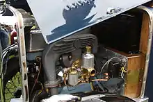 Herbert Skinner (1872–1931), pioneer motorist and an active participant in the development of the petrol engine,[2] invented his Union carburettor in 1904.[3] His much younger brother, Carl (Thomas Carlisle) Skinner (1882–1958), also a motoring enthusiast, had joined the Farman Automobile Co in London in 1899.[4] He helped Herbert to develop the carburettor.[4] Herbert's son could remember his mother sewing the first leather bellows.[5] It would be given on loan to The Science Museum, South Kensington in 1934.[3][6] In 1905, Herbert applied for a patent,[5] which was granted in early 1906.[7] Later, Carl sold his interest in footwear business Lilley & Skinner and became a partner in G Wailes & Co of Euston Road, London, manufacturers of their carburettor.[4] Herbert continued to develop and patent improvements through to the 1920s, including the replacement of the leather bellows by a brass piston, even though he was a full-time director and divisional manager of Lilley & Skinner.[3][8][9]