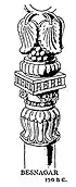 Various sculptures and pillar capitals were found near the Heliodorus pillar in Besnagar, and it is thought they were dedicated to Vāsudeva's kinsmen, otherwise known as the Vrishni heroes and objects of the Bhagavata cult.[24] These are a tala (fan-palm capital), a makara(crocodile) capital, a banyan-tree capital, and a possible statue of the goddess Lakshmi, also associated with the Bhagavat cult.[25] Just as Garuda is associated with Vasudeva, the fan-palm capital is generally associated with Samkarsana, and the makara is associated with Pradyumna.[22][16] The banyan-tree capital with ashtanidhis is associated with Lakshmi.[25]