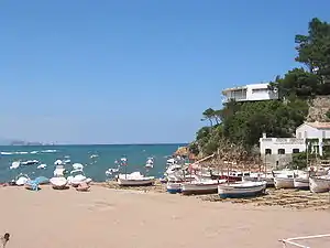 Sa Riera, Catalonia, Spain is a fishing village and holiday resort situated in a tranquil and secluded bay of the Costa Brava close to the nearby inland towns of Palafrugell and Begur. It can be reached by road from Begur and Pals and there is also a pleasant walk around the cliffs from Platja de Pals, the next resort along the coast.