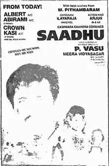 Saadhu (transl. Naive) is a 1994 Indian Tamil-language action film written and directed by P. Vasu, starring Arjun and Raveena Tandon, with Vijayakumar, Goundamani and Radha Ravi in supporting roles. The film marked the debut of Tandon in Tamil cinema.[1] It was released on 22 July 1994.[2][3]