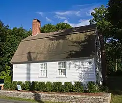 The Sabbathday House is located in a residential setting a short way northeast of Guilford's town green, on the south side of Union Street between State Street and Market Place. Set close to the street, it is a 1+1⁄2-story wood-frame structure, finished in wooden clapboards and covered by a roof that is gambreled in the front and a shed roof in the rear. The front facade is relatively plain, with a pair of sash windows irregularly placed. The main entrance is on the right side, framed by simple moulding with a cornice above. A brick chimney rises at the peak of the roof on the left side, with a second chimney on the right side, set further back. An ell extends to the rear.[2]