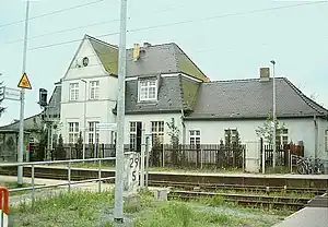 Sachsenhausen (Nordbahn) station is a railway station in the Sachsenhausen district in the town of Oranienburg, located in the Oberhavel district in Brandenburg, Germany.