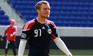 Hot spent his first summer off from college training with the Red Bulls' first team where he impressed coach Hans Backe. During the January 2011 transfer window, he spent some time with Borussia Mönchengladbach and Borussia Dortmund in hopes of signing his first professional contract. He was invited back for preseason by Borussia Mönchengladbach but instead accepted a professional contract from the New York Red Bulls.[4][5] Hot was signed by New York Red Bulls as a Homegrown Player on January 28, 2011.[6] On June 28, 2011 Hot made his first team debut for New York playing in a preseason friendly vs Atlante in 2011. He made his professional debut playing the entire second half in a 2–1 victory over FC New York in the US Open Cup.[7]