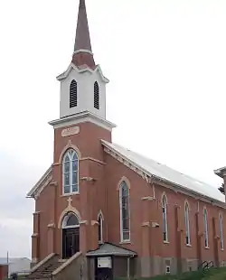 The congregation dates back to 1862, when the Kaszubian Polish and the Bohemian families settling in Pine Creek united to practice their faith in the absence of any nearby Roman Catholic parish.[1] On February 7, 1864, a parish was formally established and dedicated to Saint Wenceslaus, in honor of the parish's Bohemian contingent.[2] Despite the Bohemian name, the parish was predominantly Polish and was served by Polish-speaking priests. In all likelihood, the parish's predominance of Kaszubian Poles led to the addition of "Sacred Heart" to the church's name, recognizing a devotion particularly dear to Poles.
