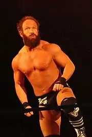 At Lockdown, Gunner defeated James Storm in a steel cage Last Man Standing match.[7] On the March 20 episode of Impact Wrestling, after Storm berated Gunner's father, Gunner attacked Storm, but he managed to handcuff him to the middle rope and threatened his father at ringside. Storm walked away, but returned to smash a beer bottle over the head of Gunner's father.[8] The following week, both men fought in a no disqualification, no countout match where Gunner was victorious. On the April 10 episode of Impact Wrestling, both men failed in winning a 10-man gauntlet match for a shot at the TNA World Heavyweight Championship.[6] The following week, Bobby Roode issued an open challenge for a tables match which was answered by Gunner, but Roode got the win with help from Storm. Afterwards, Storm and Roode beat down Gunner until Bully Ray made the save.[9] Storm and Gunner challenged each other in an "I Quit" match at Sacrifice.