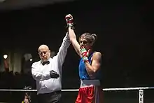 Sadaf Khadem (Persian: صدف خادم; born January 23, 1995[1]) is a female boxer from Iran.[2] She held her first official fight on April 14, 2019, where she defeated Anne Chauvin from France.[3] This fight meant she was the first Iranian woman to be part of an official boxing match.[4][1]
