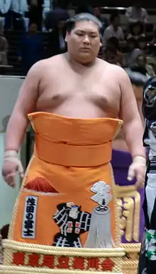 During his school years, he practiced judo. On graduating from high school, through the efforts of a former teacher, he made contact with Nakadachi (later Sakaigawa) stable and was accepted. His ring debut was in January 2003.