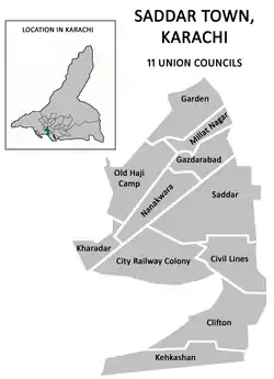 - "Saddar Town". City District Government of Karachi website. Archived from the original on 13 June 2006. Retrieved 21 May 2022.