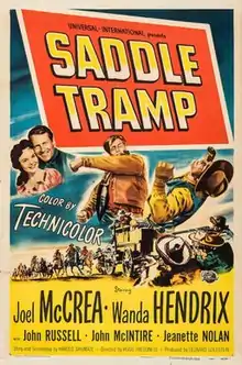 Saddle Tramp is a 1950 American Western film directed by Hugo Fregonese and starring Joel McCrea and Wanda Hendrix.[1] Its uncredited theme song was "The Cry of the Wild Goose" by Frankie Laine.
