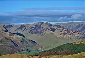 Under Saddle Yoke is a hill in the Moffat Hills range, part of the Southern Uplands of Scotland. Despite its name, it is 10m higher than its neighbouring top, Saddle Yoke. Located in a dramatic position on a small, grassy ridge in between two deep glens, Blackhope and Carrifran, it awards excellent views into the rest of the Moffat Hills and the Ettrick Hills opposite. Although incomparable to the Scottish Highlands and not particularly precipitous, the ridge between and atop the Yokes is the narrowest summit ridge in the Southern Uplands. The electric fence that comes out of Blackshope and crosses the ridge to the north of Saddle Yoke and then continues down into Carrifran hasn't worked in 40 years. A popular round known as the Hart Fell Horseshoe begins near Blackshope and normally ascends Nether Coomb Craig first, then passing over Swatte Fell, Hart Fell and looping round Hartfell Rig to the Saddle Yokes before the descent.[4]