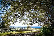 The foothills go down to Kiama and Gerringong and the sea and down to Jamberoo Valley and the Minnamurra River. The entire area was once covered by a subtropical rainforest known as the Illawarra Scrub but is now restricted to a small area around the summit lookout. The foothills include much dairy farming, and many historic dry walls remain. On the eastern ridge of the mountain is Saddleback House and in the northern foothills is Jerrara Dam, the region's first water supply, built in the 19th century. Just north of the summit is a second peak, lesser known, called Mount Brandon. Approximately three kilometres (1.9 mi) south is Fox Mountain, an extension of Saddleback with its own peak.