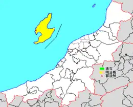 Location of former Sado-gun, Niigata Prefecture, highlighted in yellow.