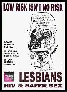 A year before the HIV virus was isolated and named, the San Francisco chapter of the Sisters of Perpetual Indulgence published a small pamphlet titled Play Fair! out of concern over widespread STIs among the city's gay male population. It specifically named illnesses (Kaposi's sarcoma and pneumocystis pneumonia) that would later be understood as symptoms of advanced HIV disease (or AIDS). The pamphlet advocated a range of safe-sex practices, including abstinence, condoms, personal hygiene, use of personal lubricants, and STI testing/treatment. It took a casual, sex-positive approach while also emphasizing personal and social responsibility. In May 1983—the same month HIV was isolated and named in France—the New York City-based HIV/AIDS activists Richard Berkowitz and Michael Callen published similar advice in their booklet, How to Have Sex in an Epidemic: One Approach. Both publications included recommendations that are now standard advice for reducing STI (including HIV) risks.[6][7][8]