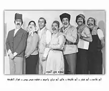 Sah Al-Noom (Arabic: صح النوم) is a Syrian television series, first aired in 1972. It was written by Nehad Kaleai and acted by Duraid Lahham in the role of Ghawwar, Nehad Kaleai in the role of Hosny Al-Borazan. also there are many other characters like: Naji Jaber in the role of Abu Antar, Najah Hafeez in the role of Fatoom, Abdel-Latif Fat'hy in a role of Chief of Police Abu Kalabsha and Yassin Bakosh in a role of Yassin, otherwise many other Syrian actors still in memory.[1]