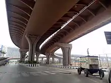 The Sahar Elevated Access Road, abbreviated to SEAR, is a dedicated, elevated, express access road in Mumbai[1] that connects the Western Express Highway (WEH) near Hanuman Nagar junction in Vile Parle, with the forecourts of Terminal T2 of the Chhatrapati Shivaji International Airport.[2] The road improves access and travel times between the WEH and the airport.[3] The 2.2 km long access road has 4 entry and 2 exit points. The road also includes an underpass for vehicles travelling on the WEH and a pedestrian subway;[4] as well as an underpass, a tunnel, and ramps connecting the highway to the terminal which bypasses the congested roadways below.
