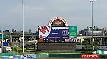 The park's original four-color dot matrix scoreboard in center field was retrofitted with a 38-foot wide by 19-foot tall Daktronics LED video screen in 1999 at a cost of $1.2 million.[88]