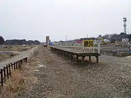 - "JR気仙沼線 【前面展望 2】 南気仙沼⇒陸前階上" (video). YouTube.com. Archived from the original on 2021-12-13. Retrieved 2011-04-26. video of a train trip from Minami-Kesennuma Station to Rikuzen-Hashikami Station in 2009, passing through Matsuiwa Station and Saichi Station without stopping at around 03:05 minutes and 05:05 minutes, respectively. Satellite photos (e.g., in Google Maps) showed that large sections of track and railway bridges were severely affected or washed away by the 2011 tsunami. Minami-Kesennuma Station, Matsuiwa Station and Saichi Station were all badly damaged or destroyed.