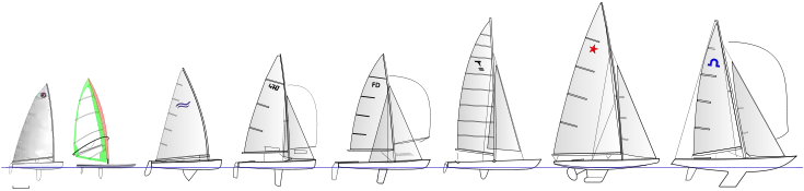 | Class | Type | Event | Sailors | Trapeze | Mainsail | Jibb/Genoa | Spinnaker | First OG | Olympics so far |