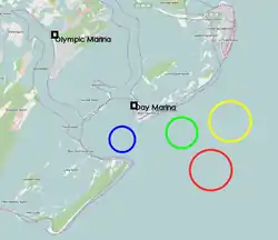 - Day marina, a temporary barge system (14,000 m2) near the north side of Wassaw Sound at the mouth of the Wilmington River. The day marina was used as a forward launch area for the dinghies and windsurf boards.