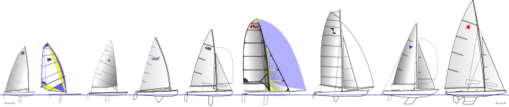 | Class | Type | Event | Sailors | Trapeze | Mainsail | Jib/Genoa | Spinnaker | First OG | Olympics so far |