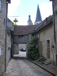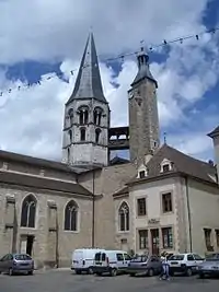 The church was built in 1120 by the Benedictines of Cluny. It measures 41 m in length and 16 m wide. It was plundered several times and has been heavily restored. The most recent enhancement has been the replacement of the metal bridge between the towers with a wooden one, more in keeping with the Burgundian style. In 1802, three vaults contiguous to the church were destroyed to build a corn exchange on their site.