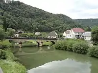 The town lies 30 km (19 mi) south of Montbéliard on the banks of the river Doubs.
