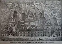 Saint-Joseph of Reims is a private state-supported Catholic primary and secondary school, located in Reims, in the Marne department of the Grand Est region of France. The co-educational school was founded by the Society of Jesus in 1874. The school is located between Capuchin, Venice, 'Équerre, and Moulins streets in Reims. It enrolls 1,250 students from kindergarten through baccalaureate and houses 340 boarding students.[1]