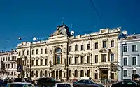 In 1864, the State Bank of Russia gave them a small place in its building. Later, in 1871, the society found a larger place in a private apartment in Lesnikov's house located on 18/27 Ekaterininsky canal.[5] But it had soon turned out that the places they occupied were not enough for keeping financial papers and assets. In 1887 the board suggested that the General Assembly give them a loan of 500,000 Rubles to construct a building for the Society.[5] The construction was charged with Count Paul-Jules de Suzor. The Assembly commissioned a board member Mikhail Nikitich Kobyzev (Michel Kobyseff) and Count Suzor to Europe in order to study the organization of bank and credit. Upon their return, Suzor's project was approved and the construction was supervised by Kobyzev. In 1890 the society moved into the new building.[5]