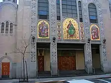 Saint George Ukrainian Catholic Church (Ukrainian: Украї́нська Католи́цька Це́рква Св. Ю́ра, romanized: Ukraḯnsʹka Katolýtsʹka Tsérkva Sv. Yúra pronounced [ʊkrɐˈjinʲsʲkɐ kɐtoˈlɪt͡sʲkɐ ˈt͡sɛrkʋɐ sʲʋʲɐˈtɔɦo ˈjurɐ]) is a Ukrainian Greek Catholic Church located in East Village, Manhattan, New York City, at 7th Street and Taras Shevchenko Place.[5] The church and the adjoining St. George Academy are encircled by, but not included in, the East Village Historic District. For over 100 years, this Ukrainian parish has served as a spiritual, political and cultural epicenter for several waves of Ukrainian Americans in New York City.[6]